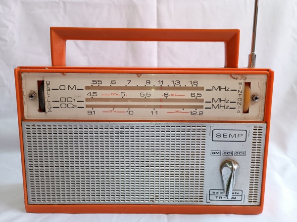 • ANTIGO RÁDIO MARCA SEMP, COR LARANJA, MODELO TR500. NÃO TESTADO