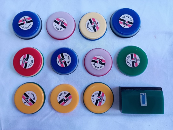 • LOTE CONTENDO 10 PEÇAS COLORIDAS DE JOGO DE BOTÃO.