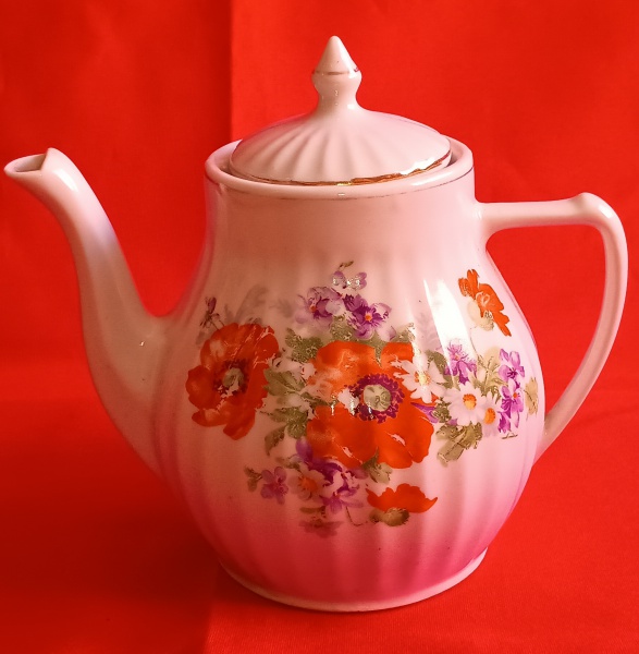 • BULE DE CHÁ EM PORCELANA POZZANI. ALTURA TOTAL APROXIMADA 16 CM.