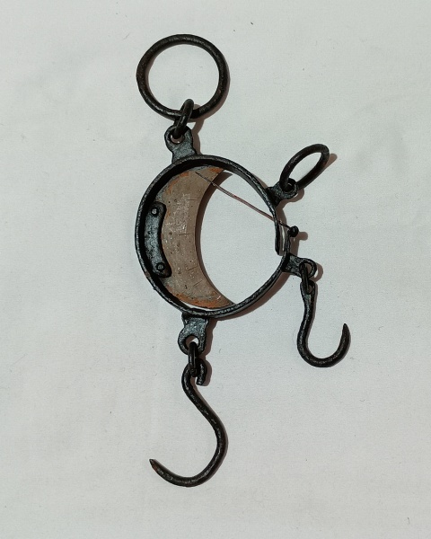• ANTIGA BALANÇA DE MÃO EM FORMA DE MEIA LUA.