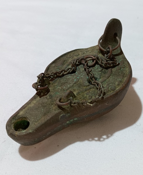 • ANTIGA LAMPARINA EM BRONZ. MEDE APROXIMADAMENTE 5 X 6 X 11 CM.