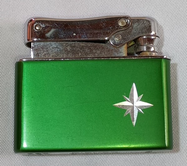 • ANTIGO ISQUEIRO FISHER NA COR VERDE. MEDE APROXIMADAMENTE 4 X 4,5 CM.